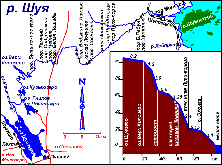 пос.Лехта - оз.Шуезеро - р.Беломорская Шуя - ст.Шуерецкая. 125 км. 8-9 ходовых дней. Кат.сл.-III.