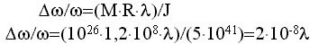 Будем считать, что твердое ядро сформировалось в последний период Т=3* 1016 с., так что скорость нарастания массы m=(M/T)=0,3* 1010 г/ с, радиус ядра R=1,2* 108 см, момент инерции J=5* 1041 г см2.