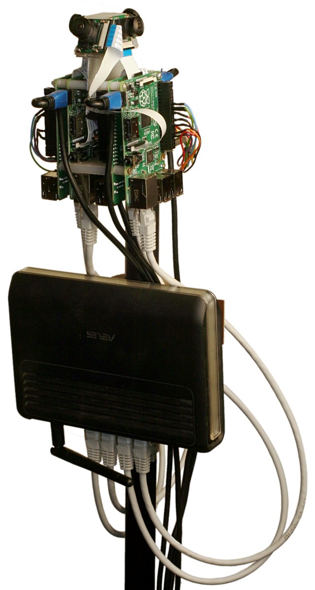 Для настройки загрузки программ и выгрузки снимков к камере можно подключить WiFi точку доступа. Это обеспечивает полный контроль каждого из четырех компьютеров Raspberry Pi с удаленного компьютера методами, описанными в предыдущей статье.