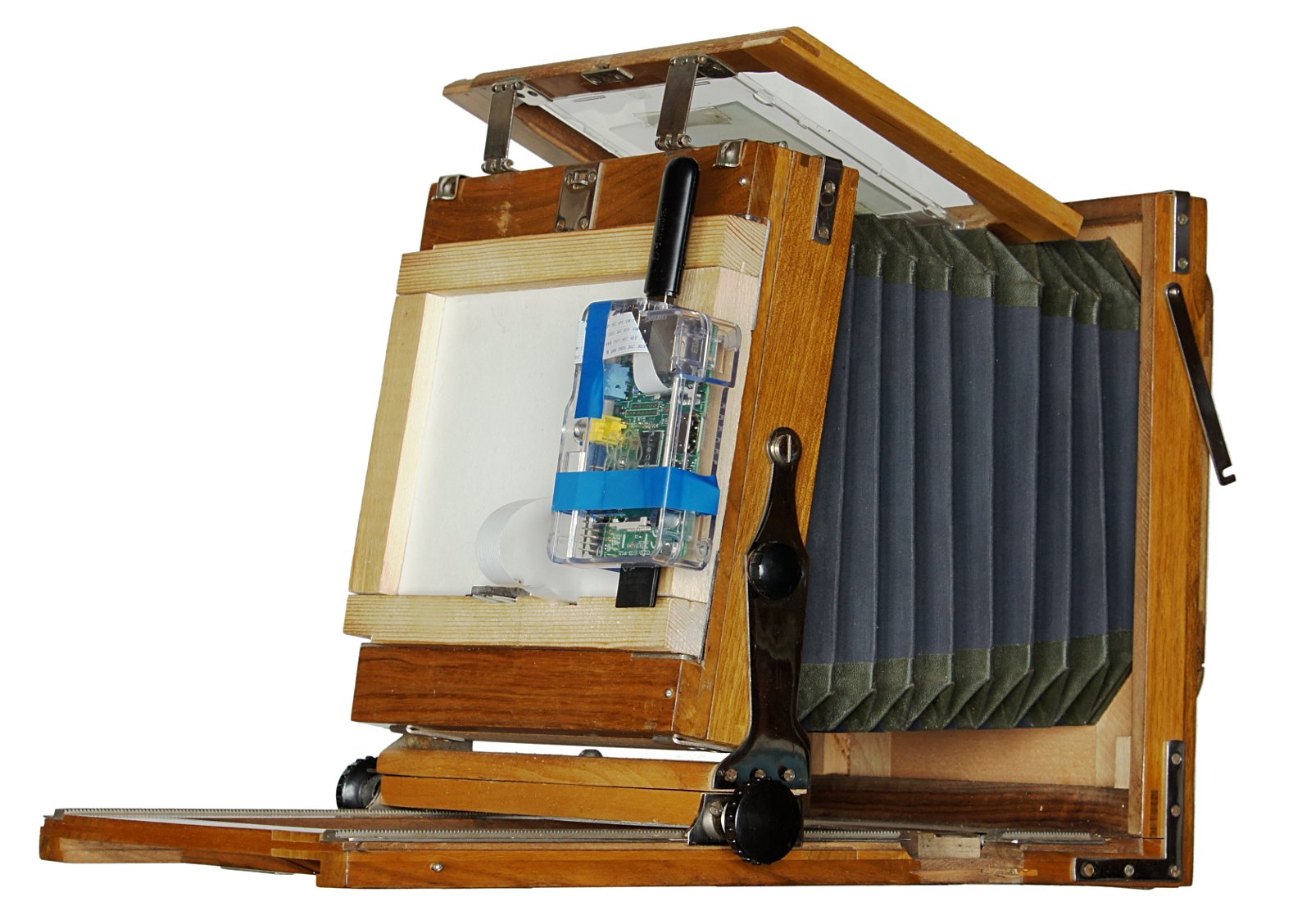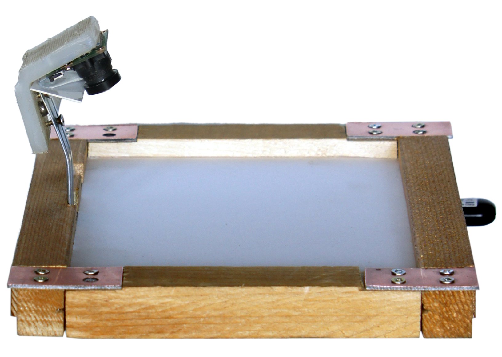 Picamera расположена сбоку от рамки и снимает изображение, сфокусированное на листе матовой бумаги для струйной печати.