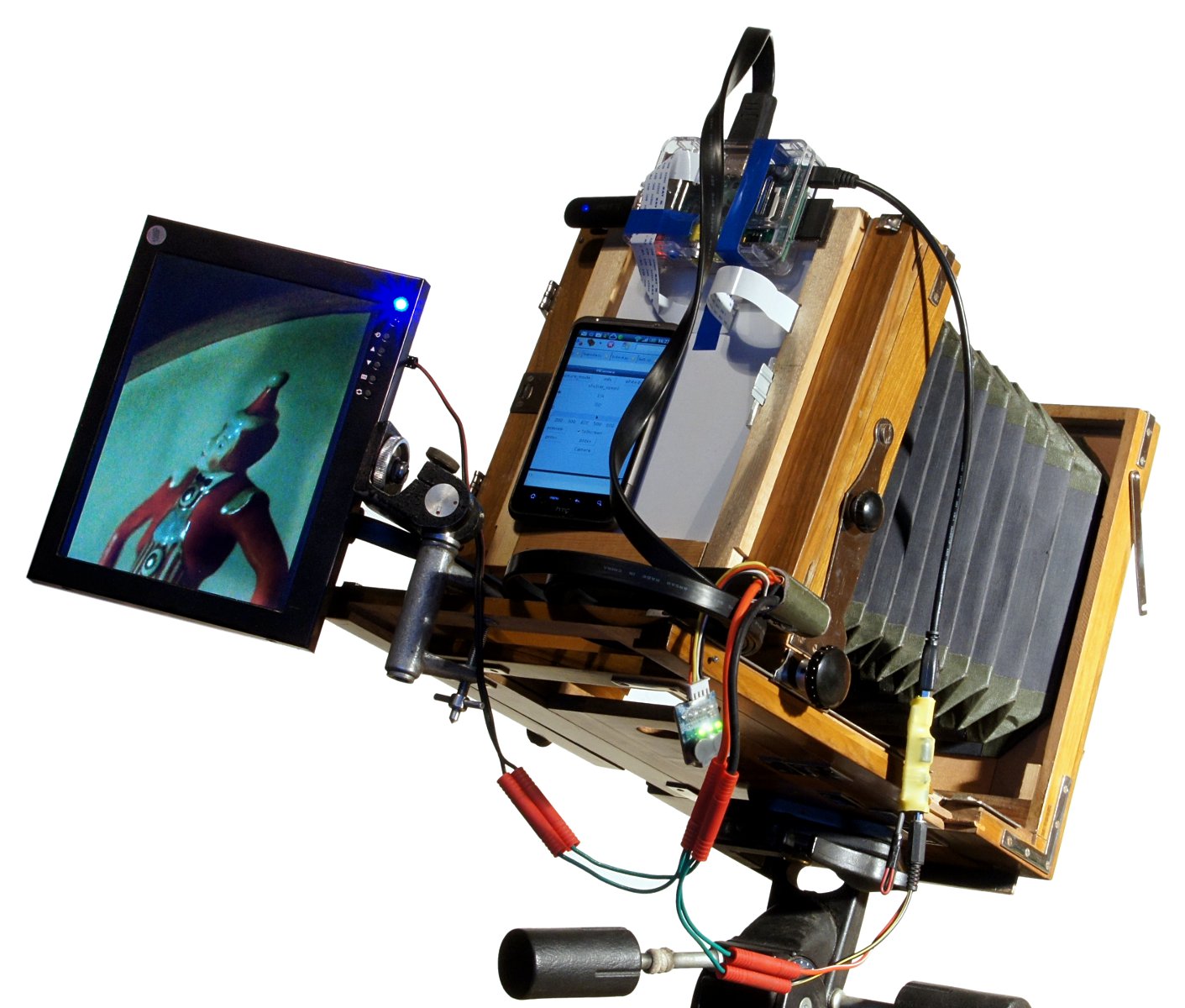 От законов геометрии никуда не денешься, поэтому чувствительность у задника будет в несколько сотен раз меньше, чем у Picamera. Сравнение с экспонометром показывает, что при установленной чувствительности в 640 ISO чувствительность задника лежит в диапазоне 10-20 ISO в зависимости от спектра источника. Это значит, что при полностью открытой диафрагме объектива 1:4 можно снимать в пасмурный день с выдержкой в 1/8 с или в помещении с 500 Вт лампой накаливания, расположенной на расстоянии 1 м от объекта с выдержкой в 1/4 с. Для комфортной фокусировки нужна частота кадров побольше. Я использую 15 кадров в секунду, и камера в режиме предварительного просмотра, разгоняя до предела чувствительность, вполне справляется с этой задачей.