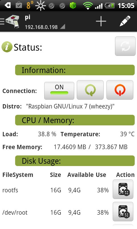 bash-4.1$ ssh -l pi 192.168.0.198 pi@192.168.0.198's password: Linux raspberrypi 3.12.22+ #691 PREEMPT Wed Jun 18 18:29:58 BST 2014 armv6l
