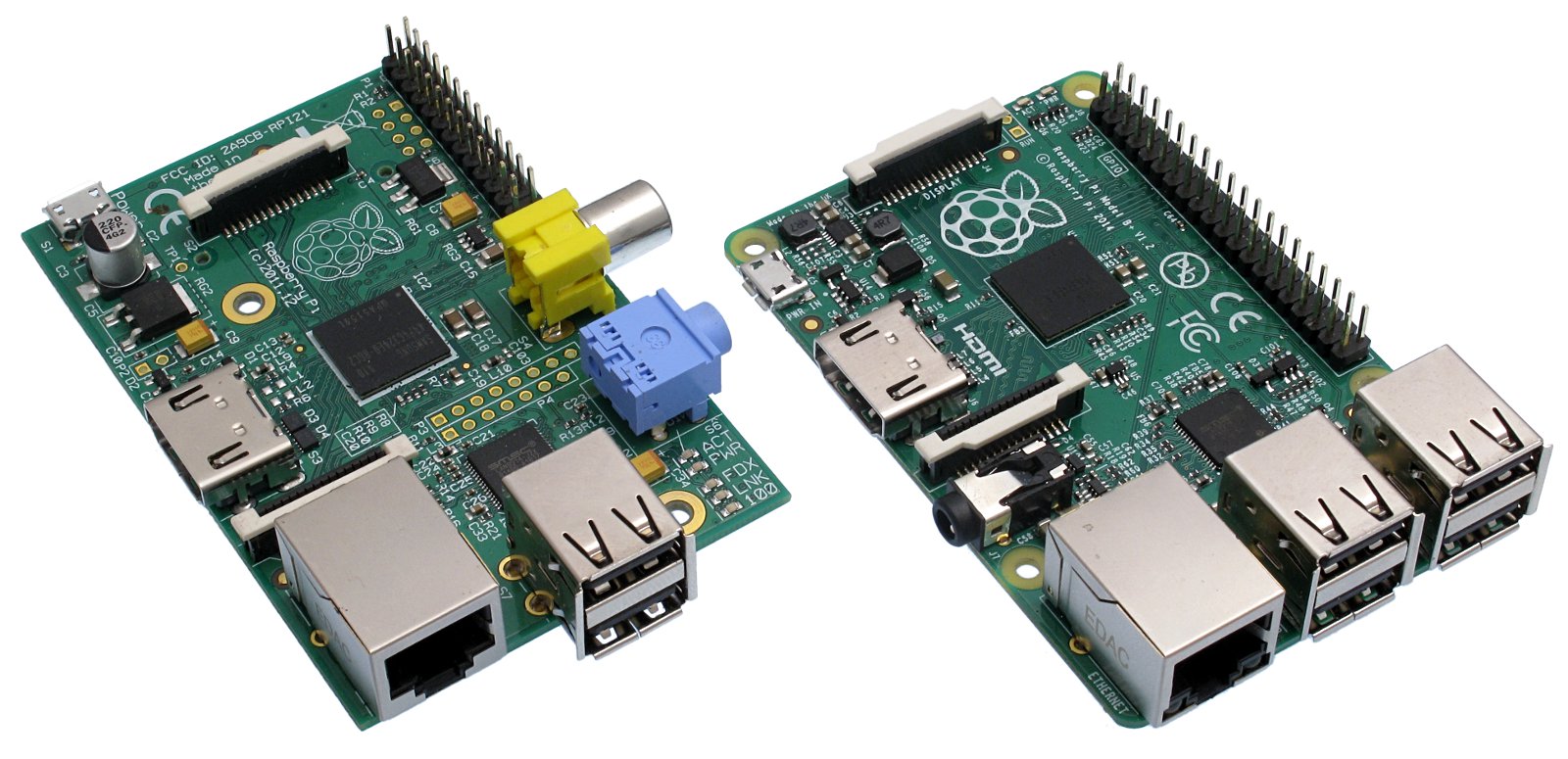 Из трех вариантов компьютера Raspberry Pi A, B и B+ мне удалось познакомится с двумя последними. Модель B продается с февраля 2012 года, а B+ с июля 2014. С точки зрения работы с камерой различий между этими моделями нет. Они оснащены ARM11 процессором Broadcom BCM2835 с тактовой частотой 700 МГц и модулем оперативной памяти 512МБ.