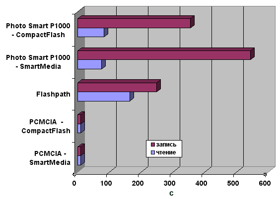 времени между картами Compact Flаsh и SmartMedia не наблюдалось, лишь примерно