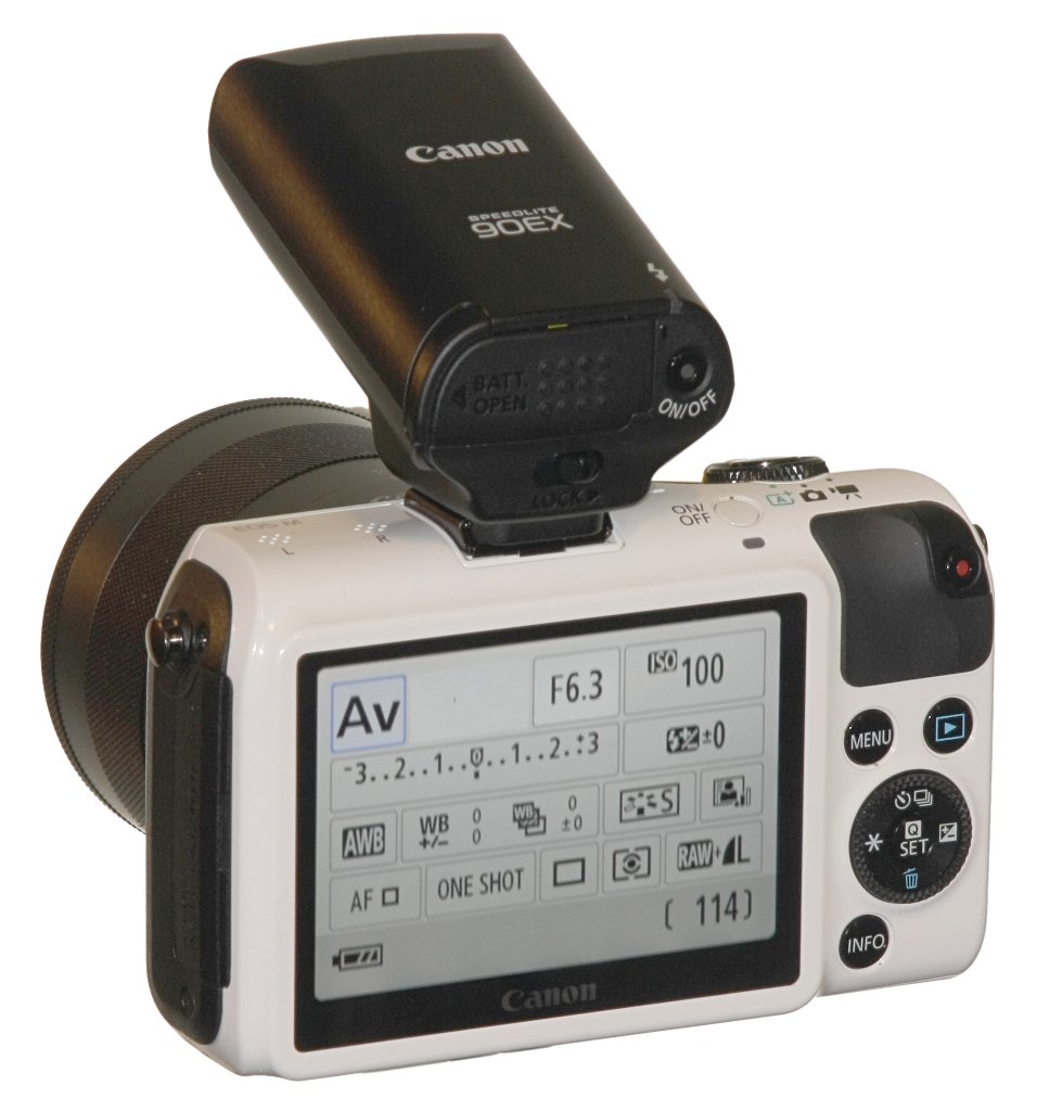 По сравнению с конкурентами, Canon EOS M выгодно отличается возможностью использования всего ассортимента автоматических вспышек для системы Canon.
