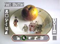 Форма определяет и способ общения с фотоаппаратом. В соответствии с дизайном, Вам предлагают теперь выбирать не цифры, а символы. То ли мы так устали, что уже совсем не хотим читать и задумываться над цифрами даже в цифровой фотографии, то ли влияние окон стало всесильно и всепроникающе, и мы предпочитаем в любом случае жать на иконку, а не задавать численное значение параметра. В общем, размер диафрагмы в лаптях, а точность в крокодилах.