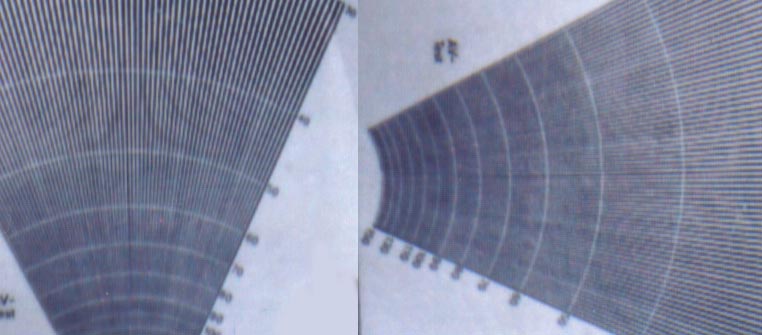 Для тестирования штриховая радиальная мира была сфотографирована камерой CASIO QV-5000SX и распечатана как при прямом соединении камеры с принтером, так и при сохранении изображения в компьютере.