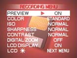 | Вид экрана в режиме видеосъемки | Меню настроек в режиме съемки | Меню регулировки яркости экрана |