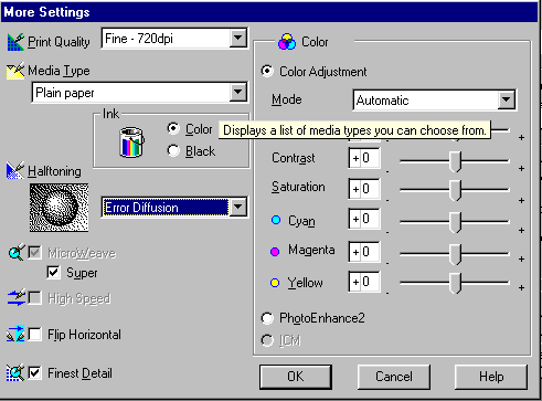 В части коррекции цвета возможности драйверов принтеров фирмы Epson много богаче. Но принтер игнорирует все настройки растрирования задаваемые графическим редактором.