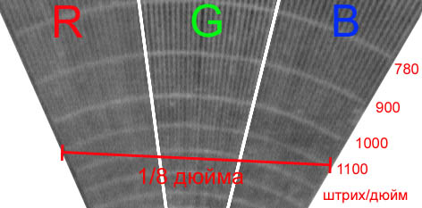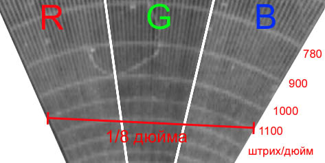 которой при просмотре через лупу видны все штрихи, были получены следующие