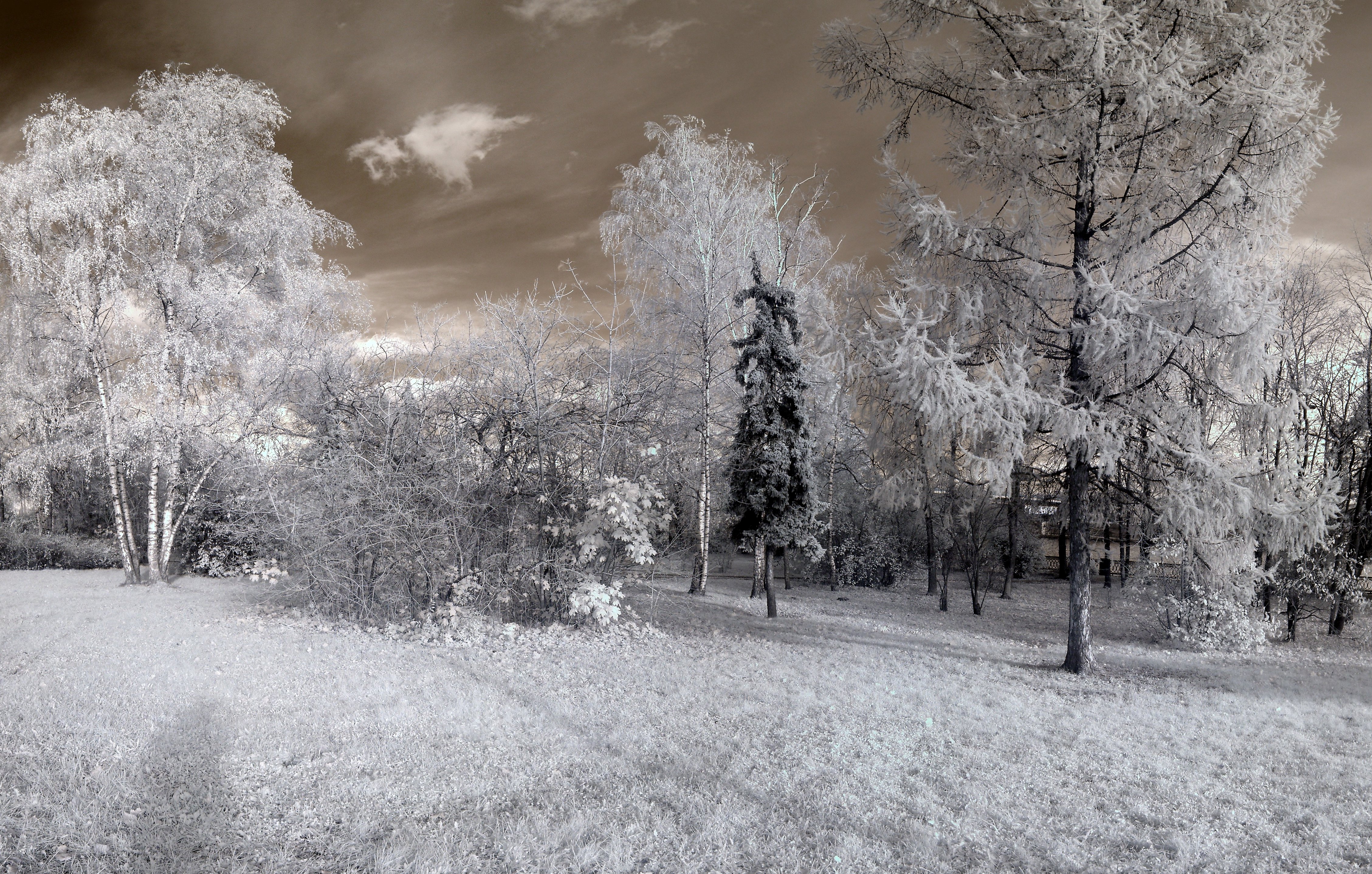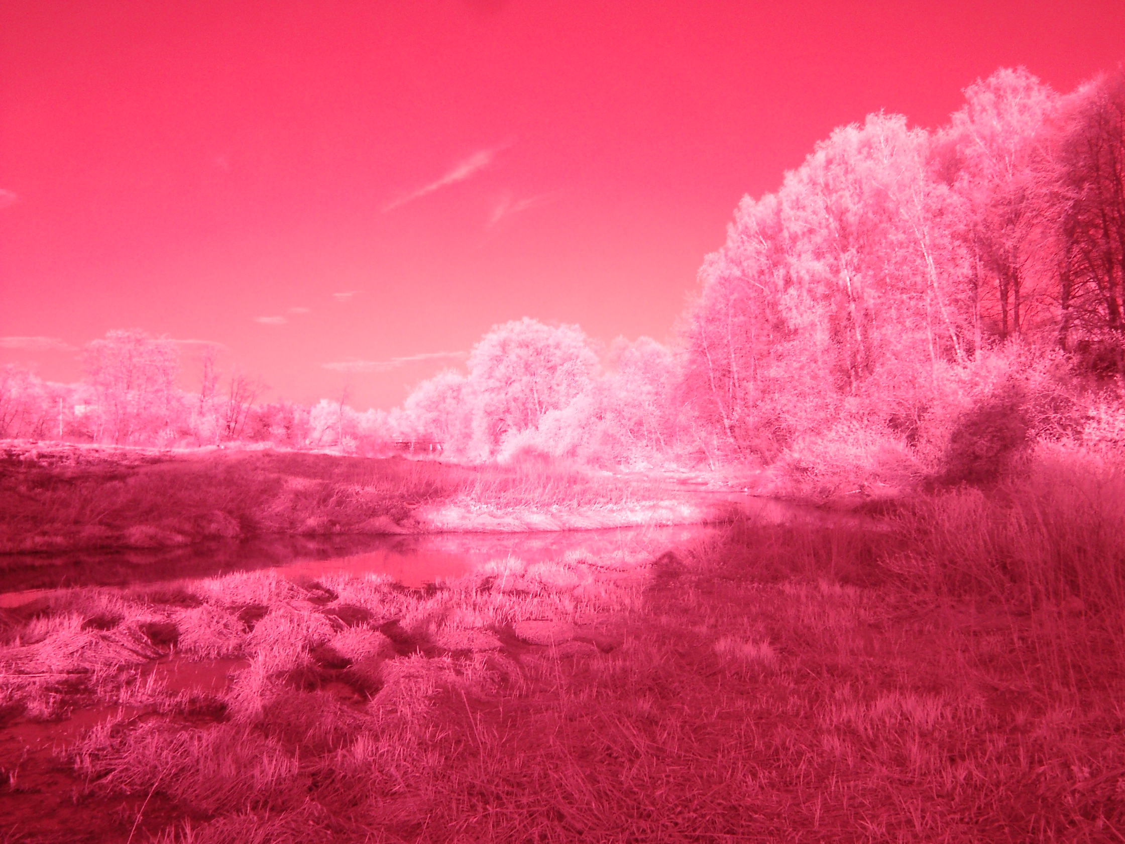 Если снимать во всем доступном диапазоне, мы получим достаточно мыльное изображение, поскольку показатель преломления сильно зависит от длины волны. Поэтому нужно выделить только ИК диапазон или с помощью фильтра Cokin P007 (89B) диапазон от красного до ИК. Эти фильтры можно уже размещать перед объективом и, таким образом, менять их, не разбирая камеру.
