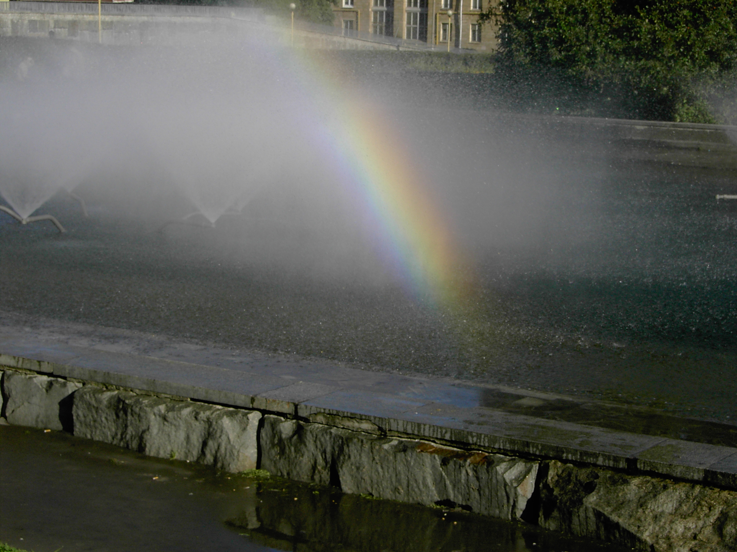 Рассматривая тестовые фотографии, появилась возможность еще раз обратить внимание на условность понятия цветопередачи. Солнечная радуга выглядит правдоподобно, спектр солнечного излучения сплошной и несмотря на то, что камера регистрирует сигнал за тремя зональными фильтрами, он таковым и остается. На следующей фотографии спектр, полученный от двух ламп с помощью дифракционного фильтра фирмы COKIN P040. Баланс белого на камере установлен для солнечного света. Верхний источник - света лампа накаливания с цветовой температурой примерно 2800 K, а нижний - люминесцентная лампа с условной цветовой температурой 2800 K.