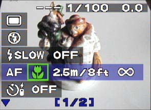 Работа с оптическим видоискателем ассоциируется у меня с двухобъективными камерами, поскольку видоискатель этой камеры фактически является объективом с переменным фокусным расстоянием, жестко сопряженным с объективом камеры. И хотя видоискатель не используется для фокусировки, но если вы посмотрите в него при невыдвинутом объективе, то видимое изображение будет нерезким. Вообще оптический видоискатель этой камеры заслуживает самой высокой оценки, поскольку он не только отслеживает все изменения фокусного расстояния объектива, но и имеет подстройку диоптрий, что позволяет людям с плохим зрением снимать без очков.