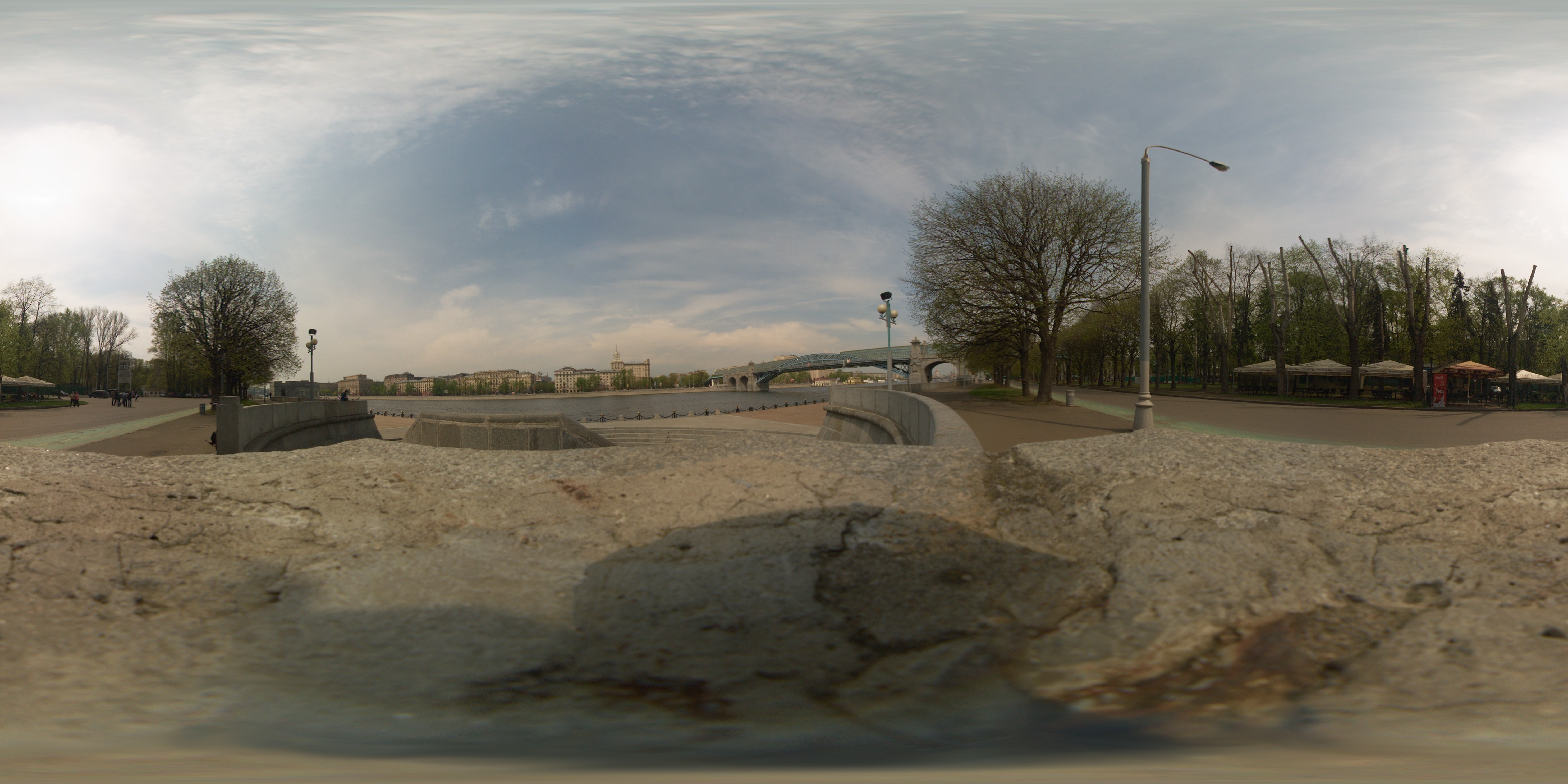 Из трех или четырех таких снимков можно получить сферическую панораму. Для представления панорам используется PTViewer. Для экономии трафика представленные панорамы имеют половинный размер от полученного в результате сшивки. Панорамы в эквидистантной проекции можно скачать и просматривать на локальной машине с помощью программы Panini.