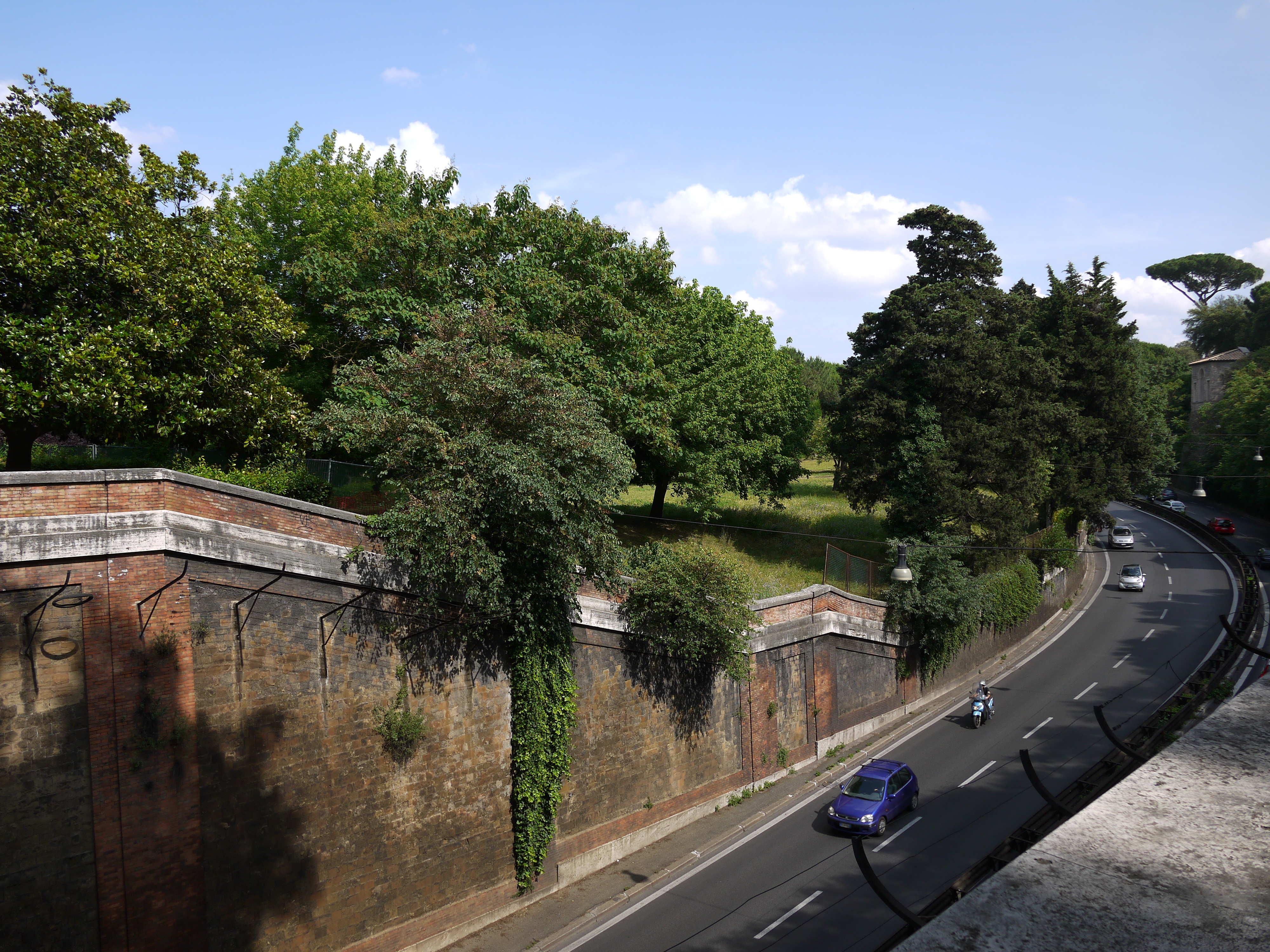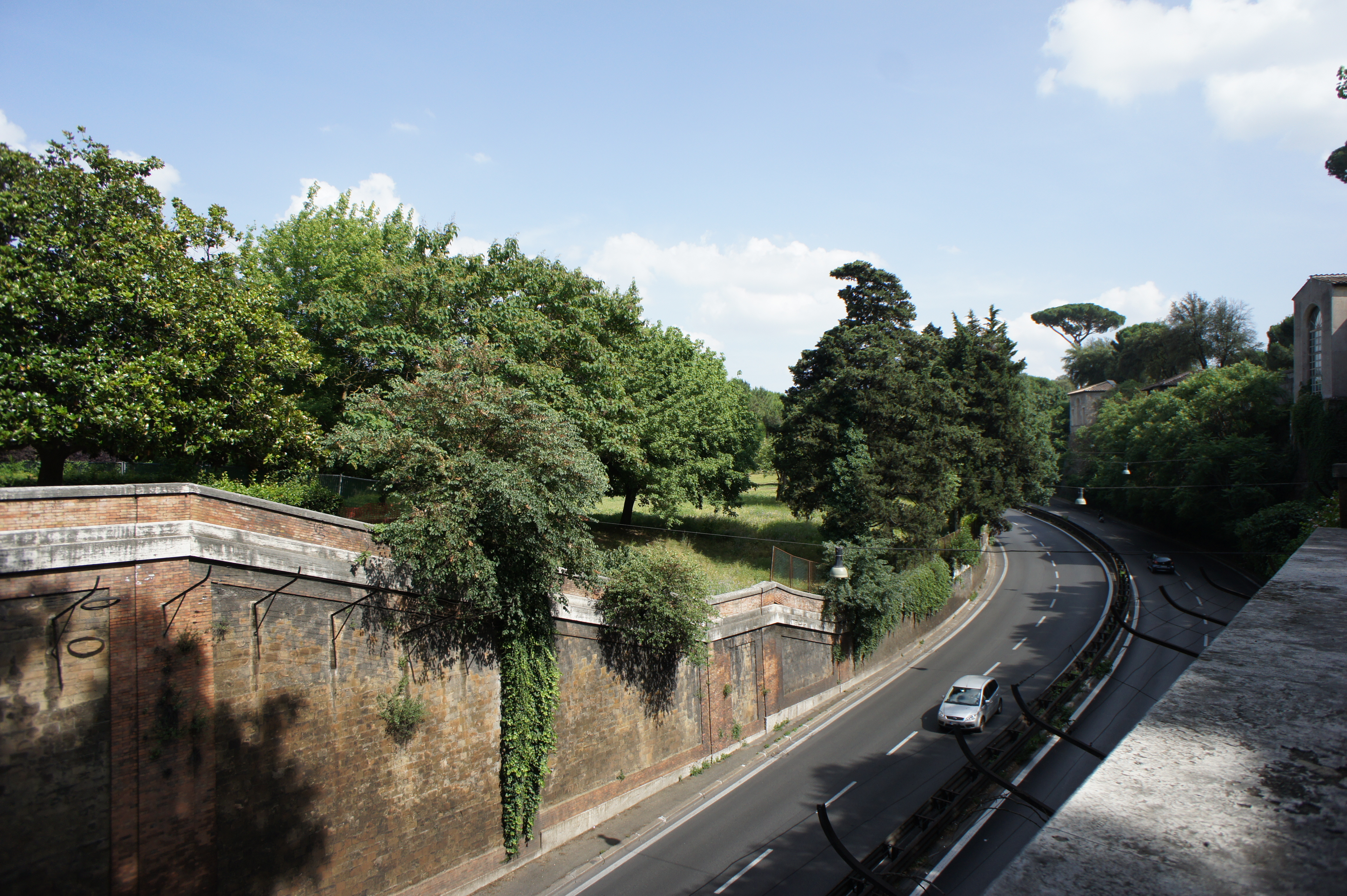Девушка конечно хороша, но для объективной оценки качества объектива требуется, понятно, кое-что другое. К счастью, в Риме с кирпичными стенами дело обстоит отлично: их много и сложены они хорошими и одинаковыми кирпичами, что и не удивительно. Со времени принципата Августа (30 г. до н. э. - 14 г. н. э.) Рим стал одним из древнейших производителей обожжённого кирпича. Из него строили стены, каркасные структуры зданий, арки, использовали для облицовки стен, сложенных из бетона с наполнением травертином, туфом и кирпичным щебнем. Ранее, в период Республики, строители для того, чтобы сгладить впечатление от грубой поверхности бетона или кладки из блоков туфа и кирпича-сырца, маскировали её облицовкой, называемой инцертум, в виде нерегулярного покрытия чаще всего мелкими с плоской поверхностью камешками. В годы Августа бетон покрывали плоско уложенными кирпичами, образующими сетку, что дало название этой кладке - ретикулат. Август, как следует из Анкирской надписи, принял Рим глиняным, а оставил мраморным. Кирпичные стены скрывали декоративными украшениями из камня и мрамора, ранее практически не употреблявшегося, а на закате Римской империи, во времена домината, стали покрывать штукатуркой, мозаикой, мраморной плиткой. Позднее византийцы перестали скрывать кладку из кирпича - этот характерный элемент романского архитектурного стиля. Мрамор и облицовочный камень смогли продержаться на зданиях не долго. Пожары (сильный пожар 283 г. частично разрушил Форум), нашествия (готов в 410 г.) и войны (после захвата Рима в 1527 г. в ходе противостояния Франции и Испании лишь через 60 лет жизнь в полной мере вернулась в него) разрушали город и вынуждали жителей строить новые дома и целые районы, используя древние здания как источник мрамора и камня. В результате в любой точке Рима сегодня можно видеть ретикулат - прекрасную тестовую мишень для испытания объективов.