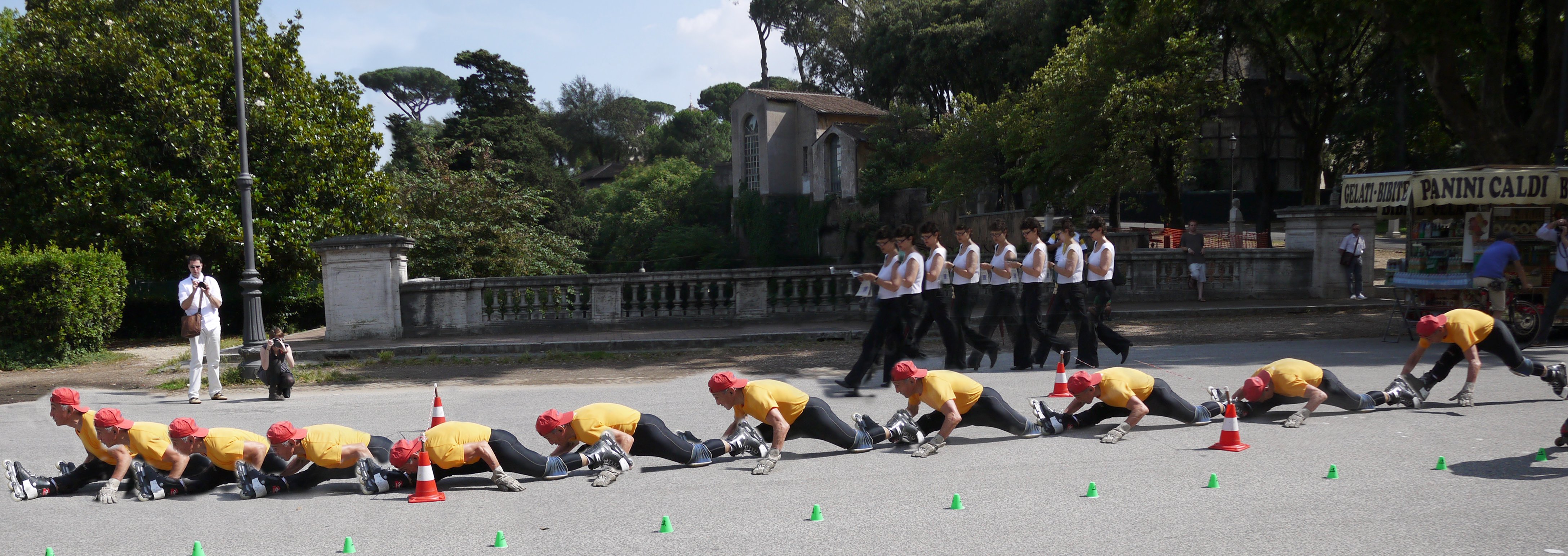 Для того, чтобы журналисты могли ощутить лёгкость и удобство камеры, фирма Panasonic организовала 4-часовую пробежку по Риму с двумя спецучастками. Первый спецучасток был посвящён скоростной спортивной съёмке. Асы роликовых коньков демонстрировали свои трюки, а мы пытались выяснить, сколь адекватно снимки способны отразить трюки.