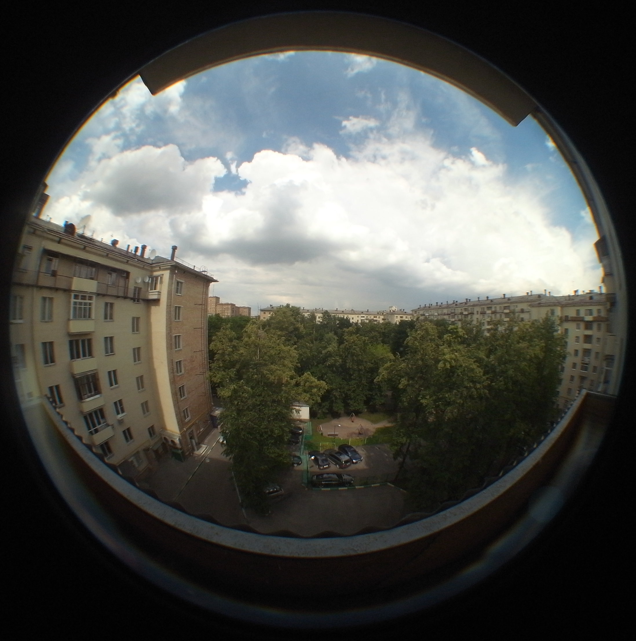 Я же хочу обратить ваше внимание на то, что с насадками камера уже перестает быть компактной, сменные объективы с равными характеристиками были бы куда меньше. Данная камера, как я уже отмечал, имеет весьма широкоугольный штатный объектив. Его фокусное расстояние можно еще уменьшить, использовав штатную насадку 0,79x DW-6. Но если мы хотим конкурировать с зеркалками, то нам могут понадобиться и сверхширокоугольные объективы типа Рыбьего глаза. Например, можно воспользоваться насадкой DCR-CF185 PRO фирмы raynox. Ее размер 96х98 мм. Плюс 40 мм установочного кольца плюс 30 мм толщины камеры. Это нам дает почти 17 см, что почти на 5 см больше, чем зеркальная полноформатная камера Canon EOS 5D с объективом Пеленг. Но поскольку эту насадку, построенную по схеме трубы Галилея, мне достать не удалось, то пришлось конструировать собственную насадку по схеме трубы Кеплера, что привело к увеличению длины системы еще на 10 см. В создании этой насадки есть некие маленькие хитрости, без которых угол в 180 градусов получить не удастся. Без них мы получим угол только 120 градусов, см. статью Труба Кеплера - макроконвертер и фоторужье в одном флаконе. Тому, как сделать круговой Рыбий глаз для компактных камер, будет посвящена отдельная статья.