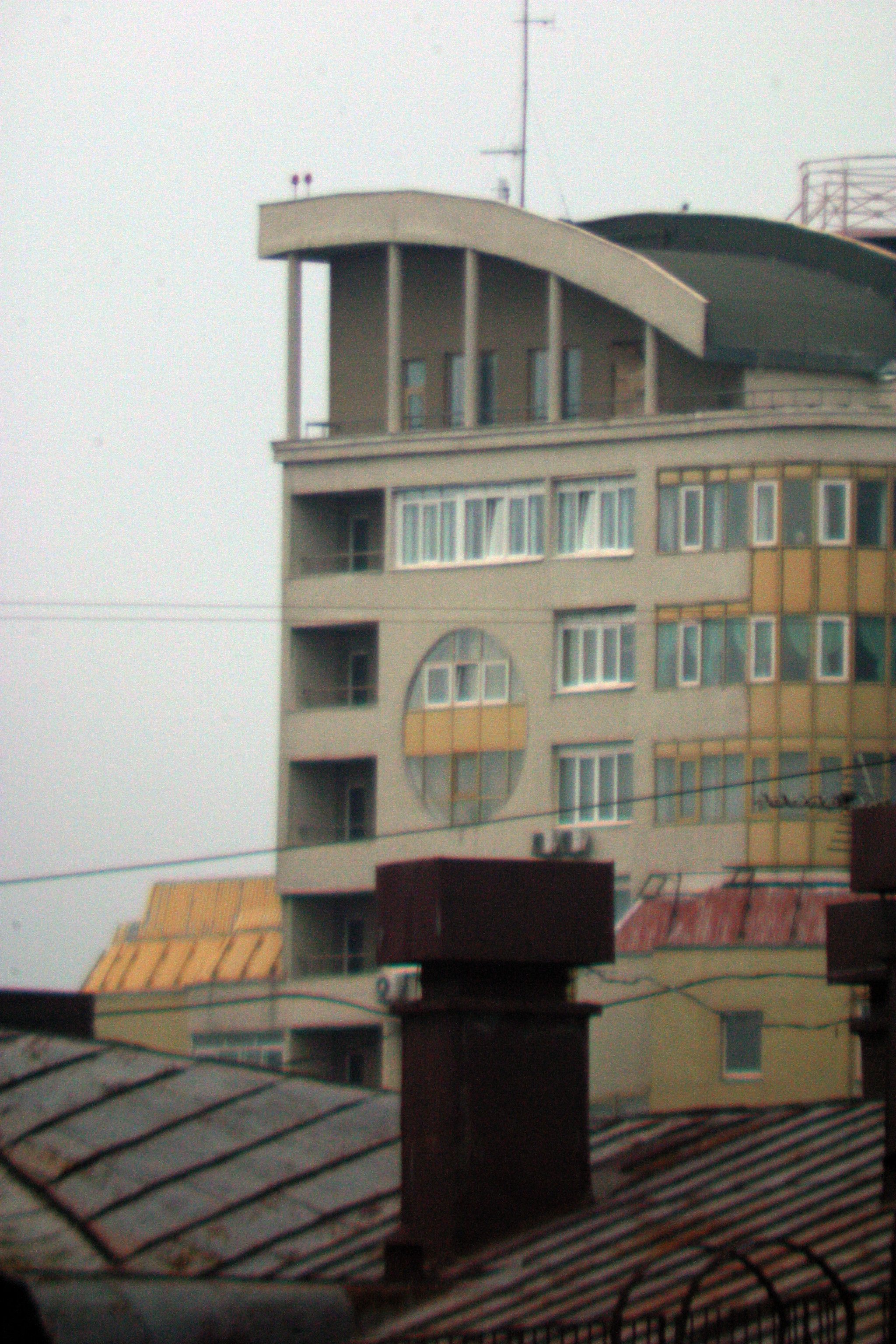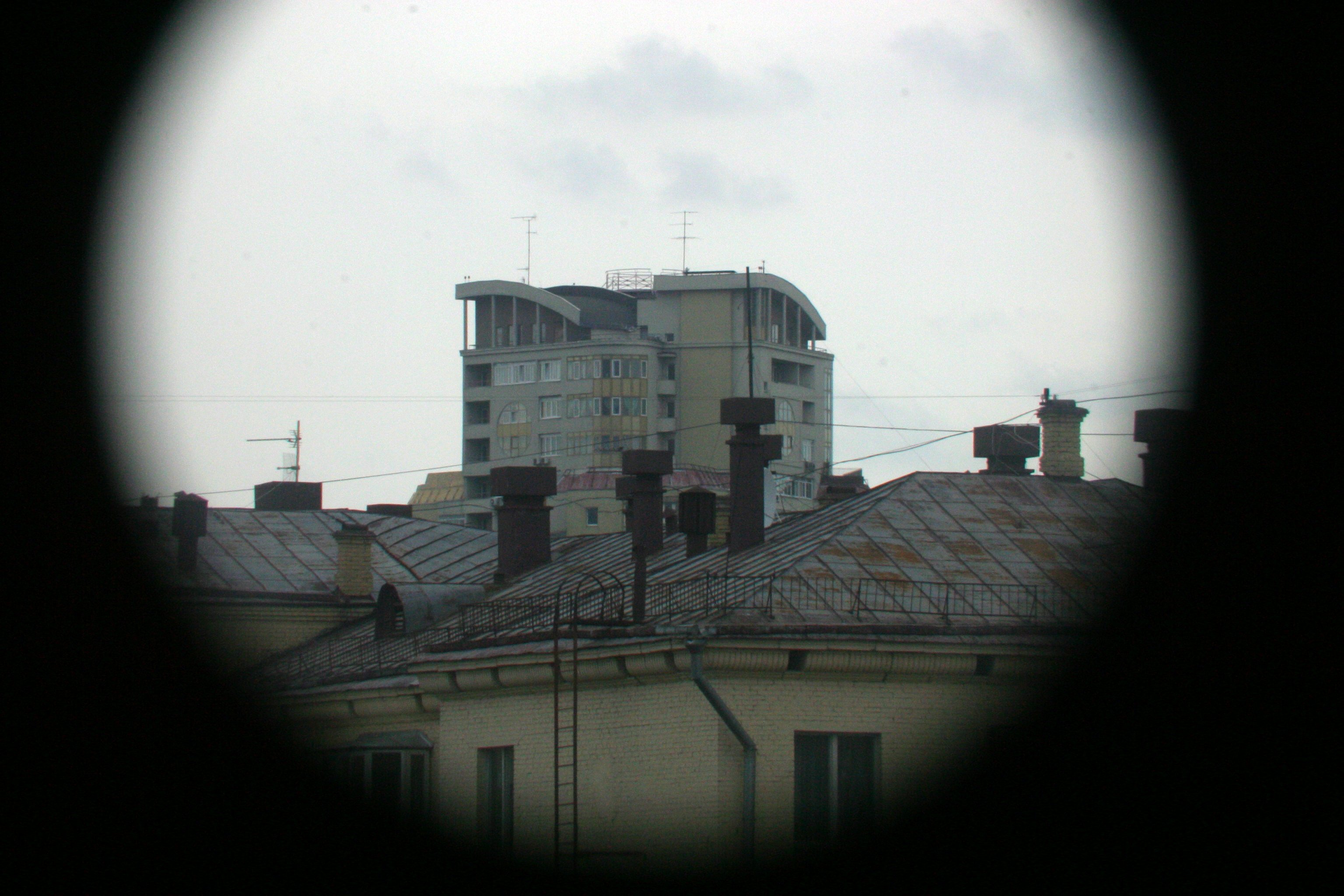 Изменяя длину мехов Pentacon (a), мы меняем общее фокусное расстояние получившейся системы, а, изменяя длину мехов ПЗФ (b), - наводимся на резкость. Данная оптическая система дает нам прямое изображение объекта, и, следовательно, в видоискателе зеркальной камеры, оно будет перевернутым. Т.о. мы получили простейший объектив с переменным фокусным расстоянием, который, впрочем, собрал воедино все возможные дефекты, с которыми борются при расчете современных вариообъективов. Даже грубая оценка геометрии получившейся системы, т.е. диаметр передней линзы и получившееся фокусное расстояние показывают, что относительное отверстие уменьшится на порядок. Диафрагмирование объективов приведет к виньетированию изображения. Однако при больших увеличениях периферийные участки линз могут и не работать, и в этом случае диафрагмирование может слегка улучшить изображение. Оптимальные значения диафрагм обоих объективов подбираются экспериментально для каждого конкретного значения увеличения. Я пробовал собрать эту оптическую схему и с другими объективами, так, я в качестве второго объектива использовал объектив Гелиос-44. Использование объектива Волна с фокусным расстоянием 80 мм от аппарата Киев 88 в качестве первого объектива (фото в заголовке статьи) дало неплохие результаты, однако предельное увеличение при равном пороговом качестве оказалось меньше. Нижеприведенные снимки сделаны пасмурным вечером 3 сентября 2006 года с балкона московской квартиры.