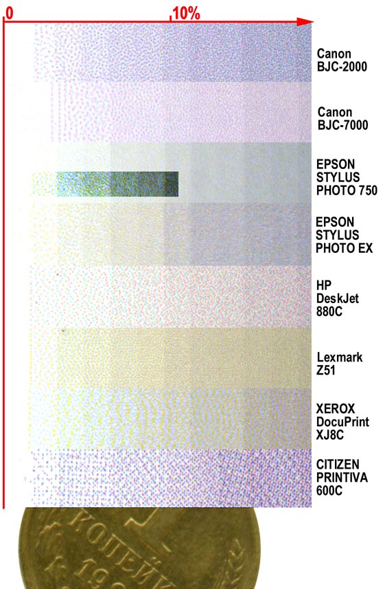 сканера, которая, вероятно, неодинакова для красителей разных принтеров, мы