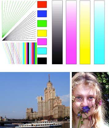 Мне представилась возможность произвести тестирование по единой методике 8 принтеров, претендующих на фотореалистичность. В этой статье приводится сравнение отпечатков тестовой таблицы, позволяющее выявить различия между тестируемыми принтерами. Отсканированные фрагменты тестов занимают довольно много места, поэтому в статью вставлены маленькие рисунки, характеризующие содержание больших картинок с реальной информацией о принтерах. Для просмотра сравнительных результатов тестов щелкните по рисунку.