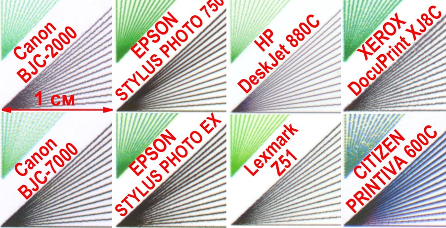 Jet 880C, Epson Stylus Photo 750 и Lexmark Z51. Наиболее гладкие линии