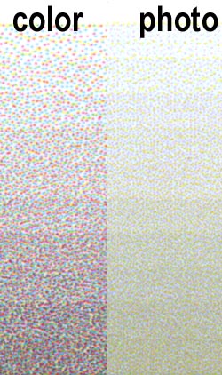 светло-голубой и черный красители. Результат сравнения печати двумя наборами